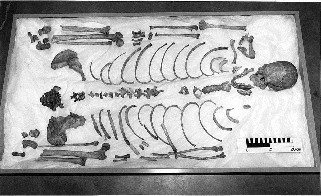 Figure 2. Layout of a human skeleton in a padded, full-size metal drawer.