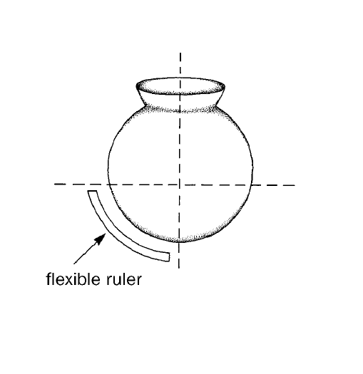 - Starting from the bottom center of the object, measure the curve from the base up to 1/3 of its height with a flexible drafting ruler (Fig. 2). The rulers can be bent around a form to retain the profile of the object until moved again.
