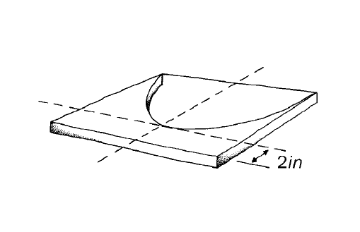 Figure 2. Measuring the base curvature of the object with a flexible drafting ruler. - Leaving 2in at the bottom of a polyethylene plank, mark the profile of a full cross-section of the object and indicate a center axis. If the shape of the object is not too irregular, one profile can be flipped to provide a full cross-section (Fig. 3).