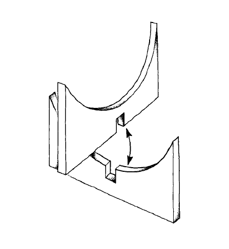 Figure 4. Notches are cut in the base of each plank for interlocking the two pieces. - Make sure the object fits adequately into the cradle. Pare away foam with a utility knife or file so that the fit is close enough to prevent rolling or pitching of the object, but not tight enough to exert pressure on the walls of the object, or inhibit easy retrieval of the object from the mount.