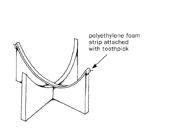 Figure 5. Cut edges of the plank are lined with strips of a soft, smooth material. - Attach the cradle to a cardboard base to increase the stability of the mount. Punch holes in the cardboard and in the base of each quadrant section of the foam planks. Thread twill tape through these holes and tie the cradle to the cardboard base (Fig. 1).