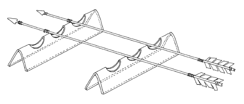 The storage supports are made of 1/4in thick acrylic sheets which are drilled and bent to form stable, inert mounts with depressions for holding the arrows in place.
