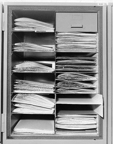 This cabinet subdivision system provides an economical and effective method of storing lightweight specimen folders and objects in commercially available units. It minimizes mechanical damage and facilitates retrieval, while maximizing shelf space. Inserts are easily repositioned, providing the flexibility to serve the changing needs of a systematically arranged collection (Fig. 1).
