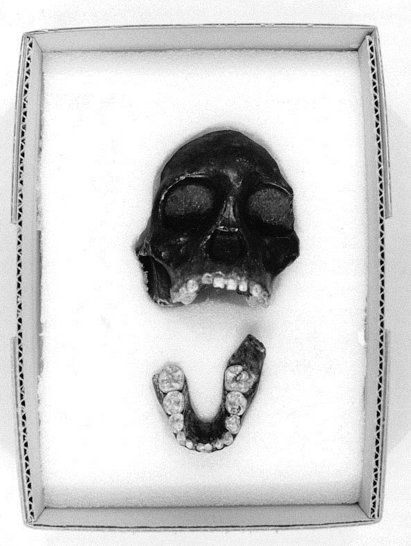 Figure 2. Skull and jawbone in custom cut, polyethylene foam support.