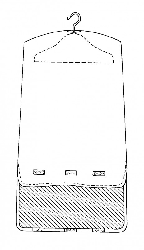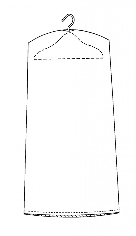 1. Lay the garment on paper and using a pencil, trace the outline at least 1/2in from the garment. Add 3in to the width of the shape to allow for seams and some roominess in the bag. The general shape of the dust cover is shown in figure 1.
