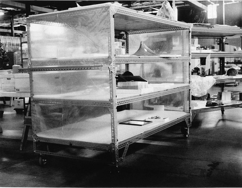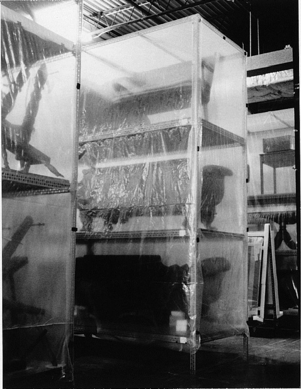 Figure 1. Steel shelving units enclosed in plastic dust covers.