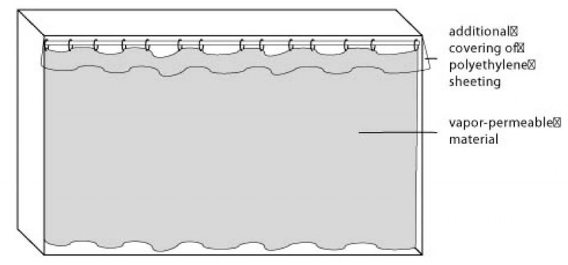 Storage shelving is covered with a curtain of a polytetrafluoroethylene/ polyester nonwoven laminate. This material is non-flammable and it does not support combustion. Its melting point is around 350˚C and above (W. L. Gore and Associates, Inc., personal communication). Panels are attached to shelving at the top by means of clip-on rings suspended from a brass rod.