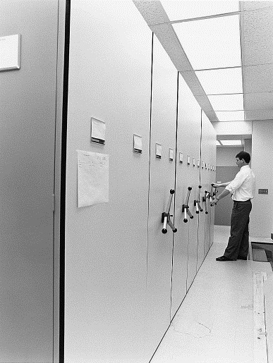 High-density mobile storage provides a means of storing collections with improved space efficiency and increased storage capacity. By reducing the need for non-productive access aisles, mobile storage can “create” storage space in seemingly crowded areas, and thus provides growth opportunities without land acquisition and new facility construction. The systems are highly flexible and will accommodate a wide variety of storage housings.