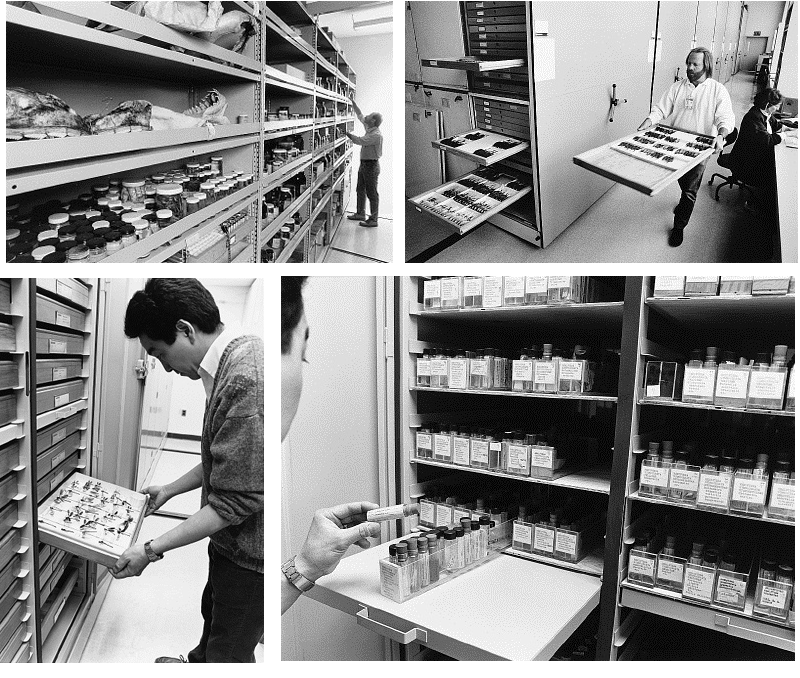 bottom left, Entomology storage in glass covered trays in cabinets with lockable doors as above.