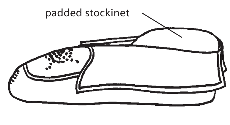 Figure 1. Moccasins can be padded with cotton orthopedic stockinet filled with polyester fiber then stitched closed at one end.