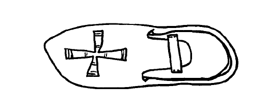 Even the slight pressure of the polyester fiber batting can deform certain areas of some artifacts, such as the soles of moccasins which have a tendency to round upwards. To prevent this distortion, a piece of thin pH neutral card, such as folder stock, can be cut to an appropriate shape and slipped inside the tubing before padding out begins. This card provides rigidity and gives a firmer surface against which the form can be shaped. Unbuffered pH neutral card stock is preferred for semi-tanned skins and other protein-based artifacts.