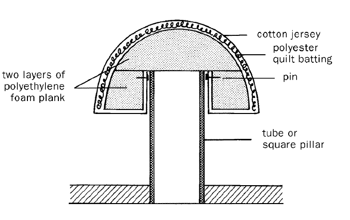 - Secure the fabric to the polyethylene foam using stainless steel pins. The core can be permanently attached to the central pillar or made removable.