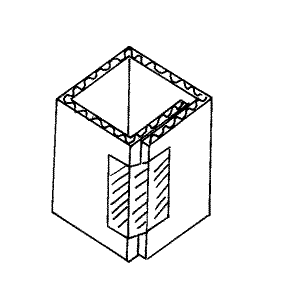 - Construct the central support from a section of pH neutral cardboard tubing, or strips of pH neutral corrugated board folded into a square pillar and fastened with spunbonded olefin tape with acrylic adhesive (Fig. 4).