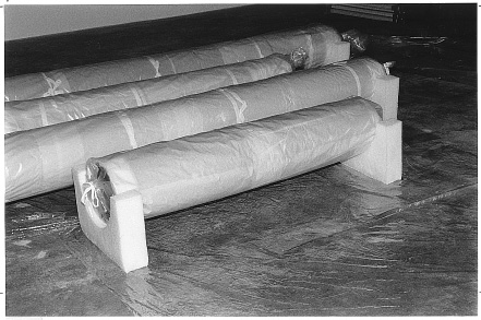 Two polyethylene foam plank cradles hold each tube, one at each end of the tube beyond the outer edge of the object. The cradles keep the tubes from resting on the floor (Fig. 1).