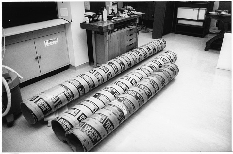 This storage system consists of industrial grade cardboard tubes with a heavy paper surface, originally manufactured to be used as forms in the pouring of concrete. These tubes have good dimensional stability and weight bearing characteristics (Fig. 2).