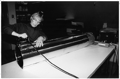 Each tube is cleaned and wrapped in a poly-aluminum laminate vapor barrier (Fig. 3).